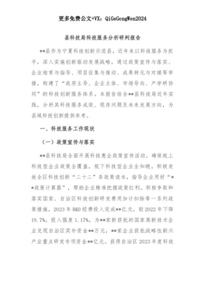 【七哥公文】2025年:县科技局科技服务分析研判报告+更多免费公文+VX:QiGeGongWen2024+更多免费公文+VX:QiGeGongWen2024