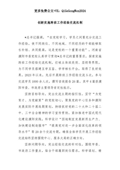 【七哥公文】2025年:创新实施跨班工作经验交流机制+更多免费公文+VX:QiGeGongWen2024+更多免费公文+VX:QiGeGongWen2024
