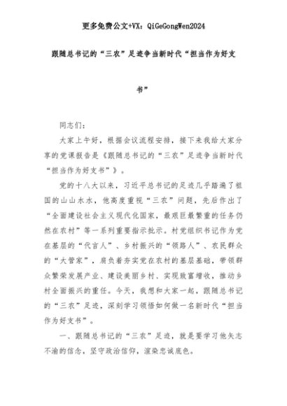 【七哥公文】2025年:跟随总书记的“三农”足迹争当新时代“担当作为好支书”+更多免费公文+VX:QiGeGongWen2024+更多免费公文+VX:QiGeGongWen2024