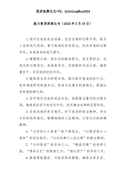 【七哥公文】2025年:能力素质类排比句(2025年5月19日)+更多免费公文+VX:QiGeGongWen2024+更多免费公文+VX:QiGeGongWen2024