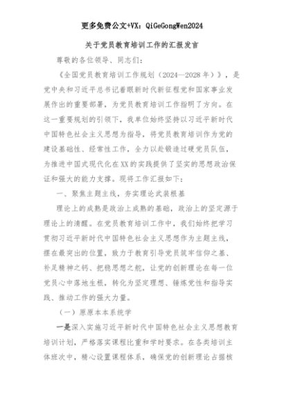 【七哥公文】2025年:关于党员教育培训工作的汇报发言+更多免费公文+VX:QiGeGongWen2024+更多免费公文+VX:QiGeGongWen2024