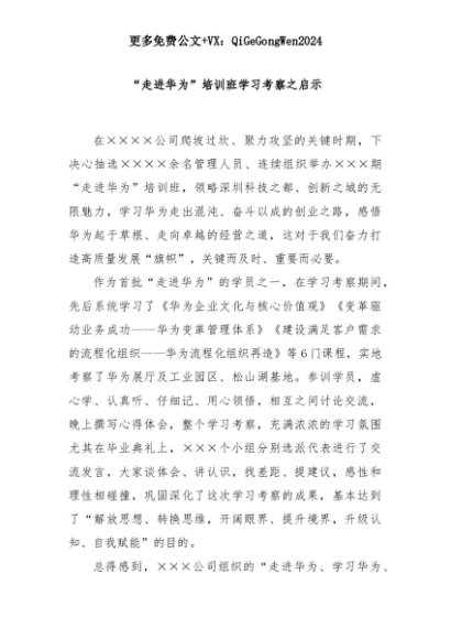【七哥公文】2025年:“走进华为”培训班学习考察之启示+更多免费公文+VX:QiGeGongWen2024+更多免费公文+VX:QiGeGongWen2024