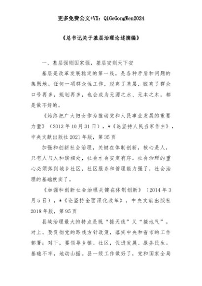 【七哥公文】2025年:《总书记关于基层治理论述摘编》+更多免费公文+VX:QiGeGongWen2024+更多免费公文+VX:QiGeGongWen2024
