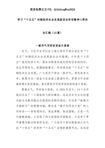 【七哥公文】2025年:(10篇)学习“十五五”时期经济社会发展座谈会讲话精神心得体会汇编+更多免费公文+VX:QiGeGongWen2024+更多免费公文+VX:QiGeGongWen2024