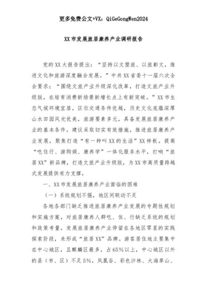 【七哥公文】2025年:XX市发展旅居康养产业调研报告+更多免费公文+VX:QiGeGongWen2024+更多免费公文+VX:QiGeGongWen2024