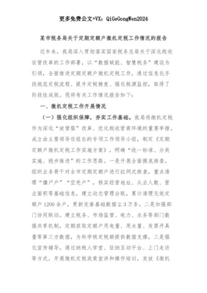 【七哥公文】2025年:某市税务局关于定期定额户微机定税工作情况的报告+更多免费公文+VX:QiGeGongWen2024+更多免费公文+VX:QiGeGongWen2024