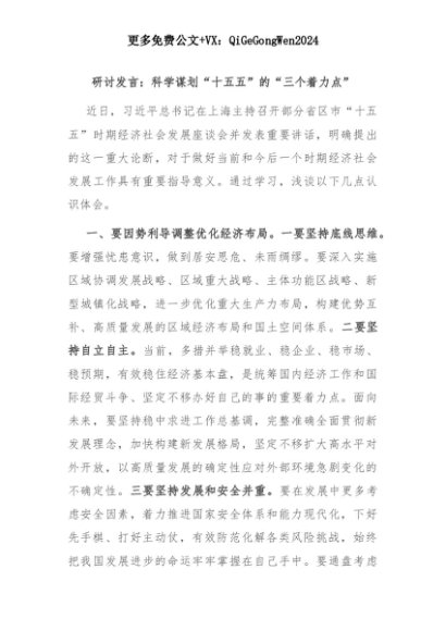 【七哥公文】2025年:研讨发言:科学谋划“十五五”的“三个着力点”+更多免费公文+VX:QiGeGongWen2024+更多免费公文+VX:QiGeGongWen2024