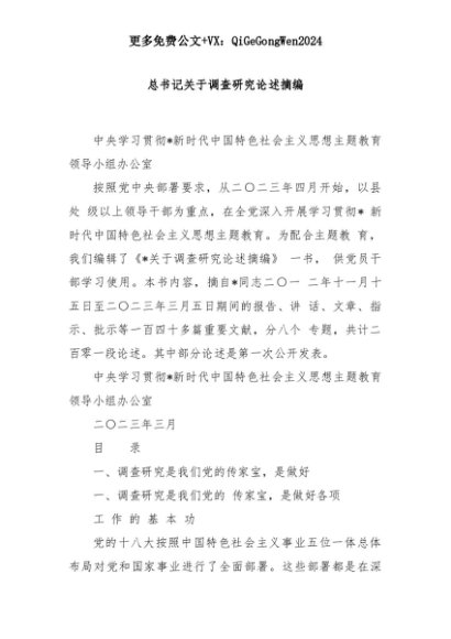 【七哥公文】2025年:总书记关于调查研究论述摘编+更多免费公文+VX:QiGeGongWen2024+更多免费公文+VX:QiGeGongWen2024