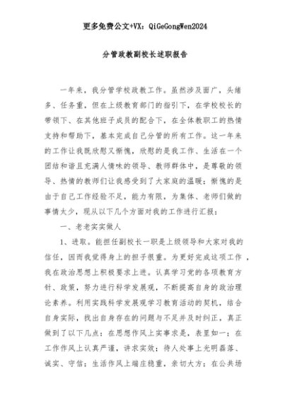 【七哥公文】2025年:分管政教副校长述职报告+更多免费公文+VX:QiGeGongWen2024+更多免费公文+VX:QiGeGongWen2024