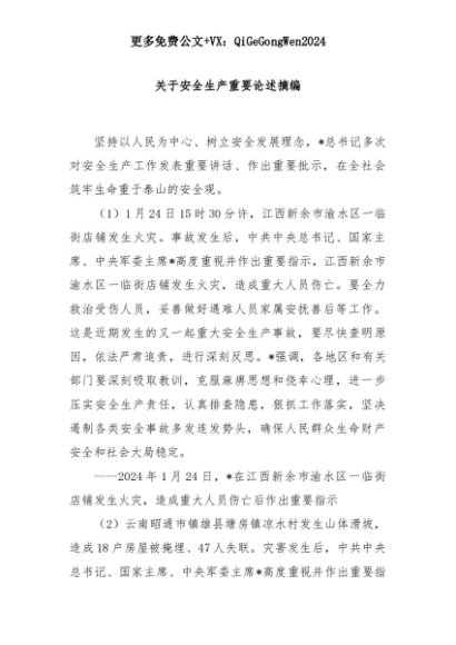 【七哥公文】2025年:关于安全生产重要论述摘编+更多免费公文+VX:QiGeGongWen2024+更多免费公文+VX:QiGeGongWen2024