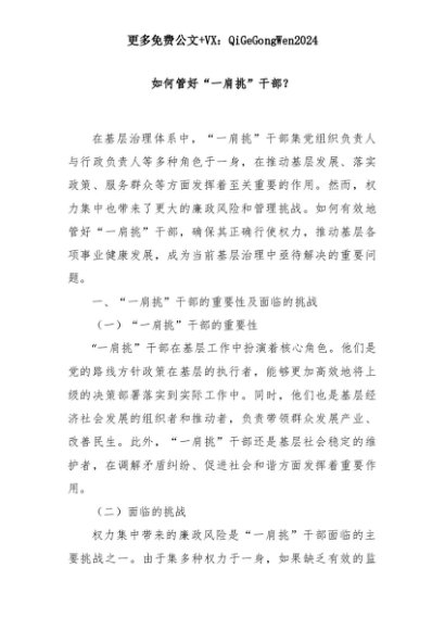 【七哥公文】2025年:如何管好“一肩挑”干部?+更多免费公文+VX:QiGeGongWen2024+更多免费公文+VX:QiGeGongWen2024