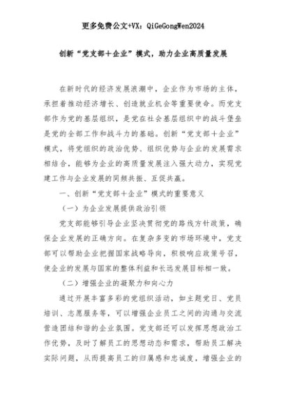 【七哥公文】2025年:创新“党支部+企业”模式,助力企业高质量发展+更多免费公文+VX:QiGeGongWen2024+更多免费公文+VX:QiGeGongWen2024