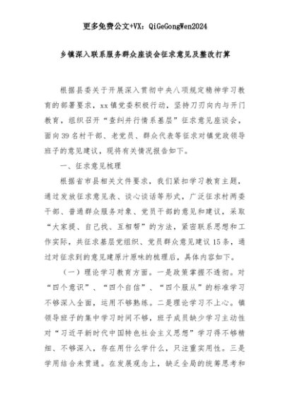 【七哥公文】2025年:乡镇深入联系服务群众座谈会征求意见及整改打算+更多免费公文+VX:QiGeGongWen2024+更多免费公文+VX:QiGeGongWen2024