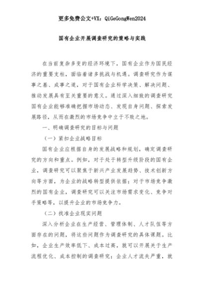 【七哥公文】2025年:国有企业开展调查研究的策略与实践+更多免费公文+VX:QiGeGongWen2024+更多免费公文+VX:QiGeGongWen2024