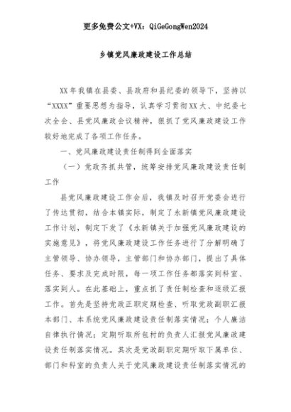 【七哥公文】2025年:乡镇党风廉政建设工作总结+更多免费公文+VX:QiGeGongWen2024+更多免费公文+VX:QiGeGongWen2024