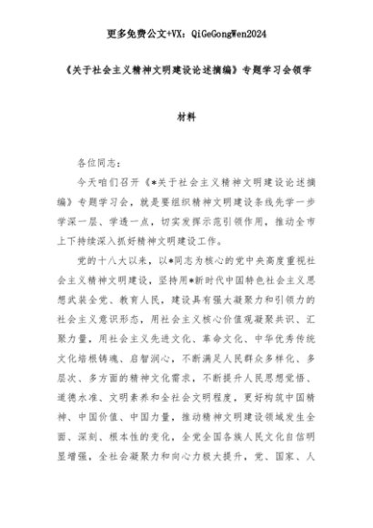 【七哥公文】2025年:《关于社会主义精神文明建设论述摘编》专题学习会领学材料+更多免费公文+VX:QiGeGongWen2024+更多免费公文+VX:QiGeGongWen2024