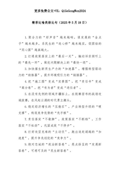 【七哥公文】2025年:精彩比喻类排比句(2025年5月18日)+更多免费公文+VX:QiGeGongWen2024+更多免费公文+VX:QiGeGongWen2024