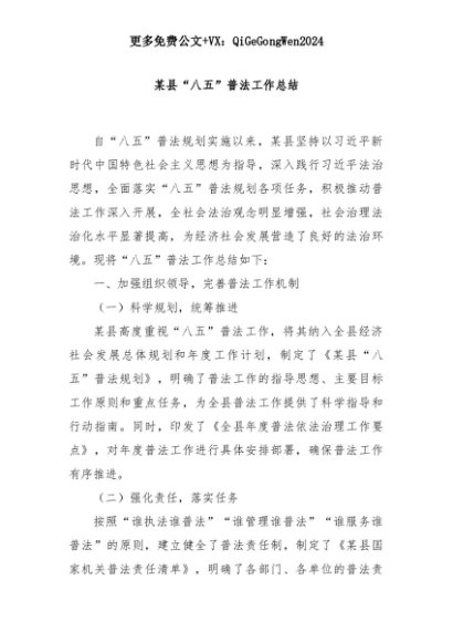 【七哥公文】2025年:某县“八五”普法工作总结+更多免费公文+VX:QiGeGongWen2024+更多免费公文+VX:QiGeGongWen2024