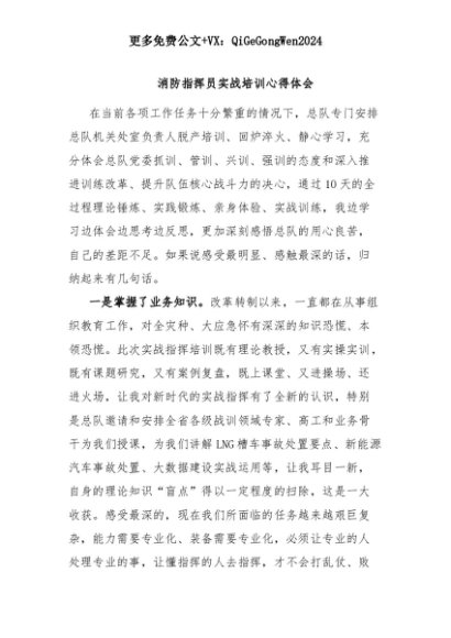 【七哥公文】2025年:消防指挥员实战培训心得体会+更多免费公文+VX:QiGeGongWen2024+更多免费公文+VX:QiGeGongWen2024