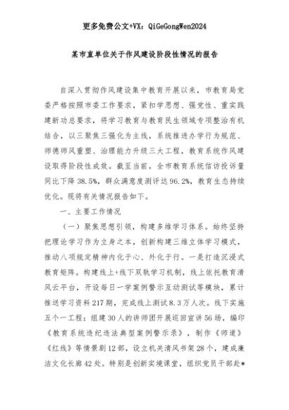 【七哥公文】2025年:某市直单位关于作风建设阶段性情况的报告+更多免费公文+VX:QiGeGongWen2024+更多免费公文+VX:QiGeGongWen2024