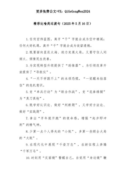 【七哥公文】2025年:精彩比喻类过渡句(2025年5月16日)+更多免费公文+VX:QiGeGongWen2024+更多免费公文+VX:QiGeGongWen2024