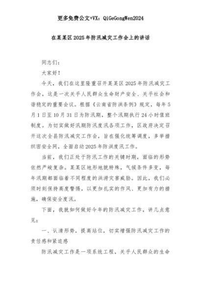 【七哥公文】2025年:在某某区2025年防汛减灾工作会上的讲话+更多免费公文+VX:QiGeGongWen2024+更多免费公文+VX:QiGeGongWen2024