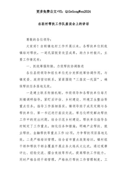 【七哥公文】2025年:在驻村帮扶工作队座谈会上的讲话+更多免费公文+VX:QiGeGongWen2024+更多免费公文+VX:QiGeGongWen2024