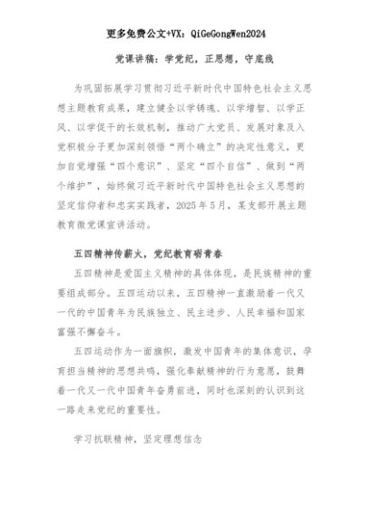 【七哥公文】2025年:党课讲稿:学党纪,正思想,守底线+更多免费公文+VX:QiGeGongWen2024+更多免费公文+VX:QiGeGongWen2024