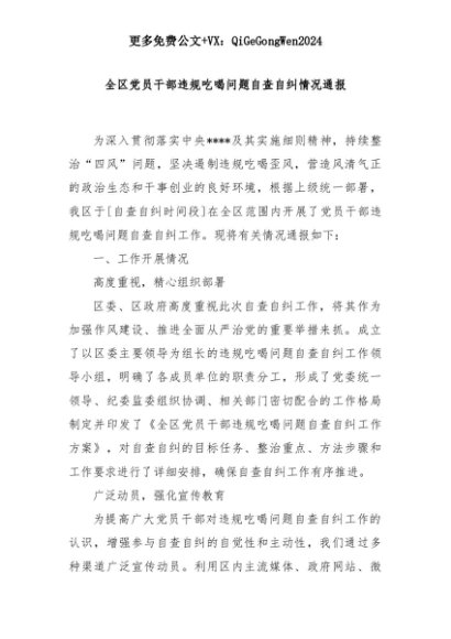 【七哥公文】2025年:全区党员干部违规吃喝问题自查自纠情况通报+更多免费公文+VX:QiGeGongWen2024+更多免费公文+VX:QiGeGongWen2024