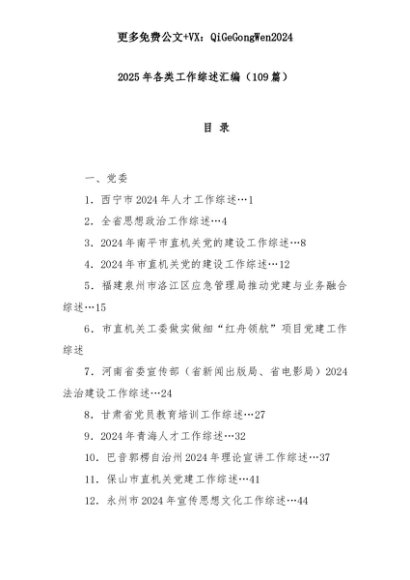 【七哥公文】2025年:(109篇)2025年各类工作综述汇编(420页)+更多免费公文+VX:QiGeGongWen2024+更多免费公文+VX:QiGeGongWen2024
