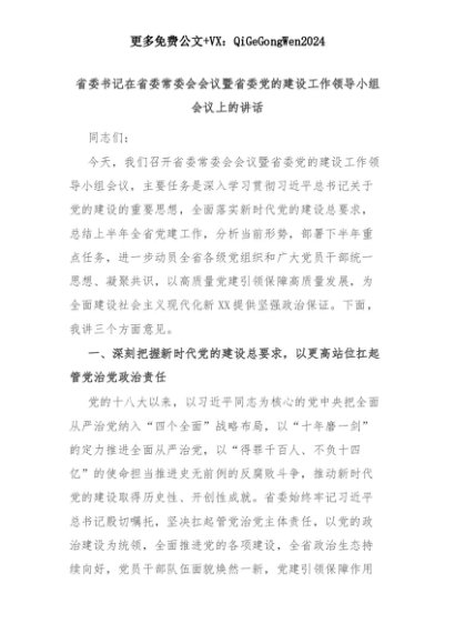 【七哥公文】2025年:省委书记在省委常委会会议暨省委党的建设工作领导小组会议上的讲话+更多免费公文+VX:QiGeGongWen2024+更多免费公文+VX:QiGeGongWen2024