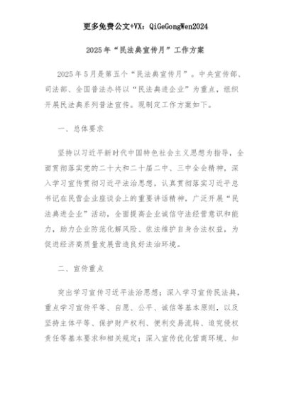 【七哥公文】2025年:2025年“民法典宣传月”工作方案+更多免费公文+VX:QiGeGongWen2024+更多免费公文+VX:QiGeGongWen2024