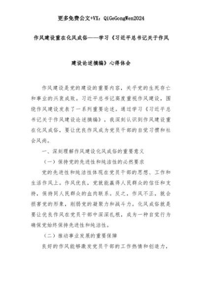 【七哥公文】2025年:作风建设重在化风成俗——学习《习近平总书记关于作风建设论述摘编》心得体会+更多免费公文+VX:QiGeGongWen2024+更多免费公文+VX:QiGeGongWen2024
