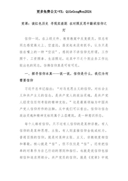 【七哥公文】2025年:党课:读红色历史 寻现实差距 在对照反思中勤拭信仰之灯+更多免费公文+VX:QiGeGongWen2024+更多免费公文+VX:QiGeGongWen2024