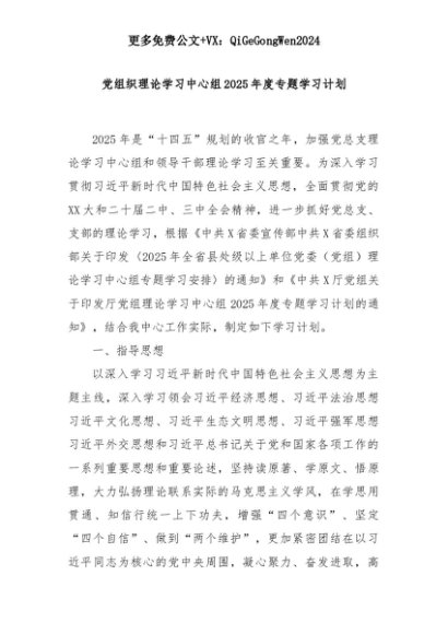 【七哥公文】2025年:党组织理论学习中心组2025年度专题学习计划+更多免费公文+VX:QiGeGongWen2024+更多免费公文+VX:QiGeGongWen2024