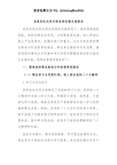【七哥公文】2025年:县政协机关党支部县委巡察自查报告+更多免费公文+VX:QiGeGongWen2024+更多免费公文+VX:QiGeGongWen2024