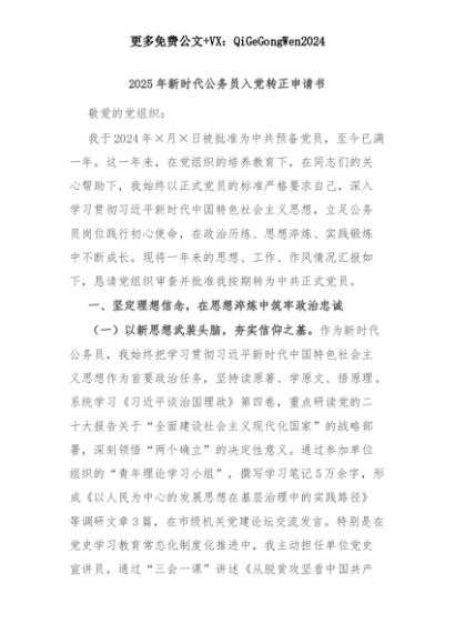 【七哥公文】2025年:2025年新时代公务员入党转正申请书+更多免费公文+VX:QiGeGongWen2024+更多免费公文+VX:QiGeGongWen2024