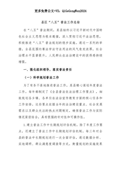 【七哥公文】2025年:县区“八五”普法工作总结+更多免费公文+VX:QiGeGongWen2024+更多免费公文+VX:QiGeGongWen2024