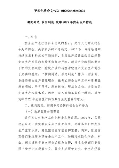 【七哥公文】2025年:横向到边 纵向到底 筑牢2025年安全生产防线+更多免费公文+VX:QiGeGongWen2024+更多免费公文+VX:QiGeGongWen2024