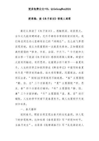【七哥公文】2025年:授课稿:读《朱子家训》悟做人道理+更多免费公文+VX:QiGeGongWen2024+更多免费公文+VX:QiGeGongWen2024