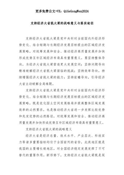 【七哥公文】2025年:支持经济大省挑大梁的战略意义与落实途径+更多免费公文+VX:QiGeGongWen2024+更多免费公文+VX:QiGeGongWen2024