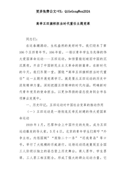 【七哥公文】2025年:高举五四旗帜担当时代重任主题党课+更多免费公文+VX:QiGeGongWen2024+更多免费公文+VX:QiGeGongWen2024