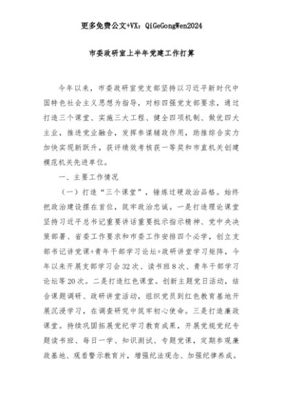 【七哥公文】2025年:市委政研室上半年党建工作打算+更多免费公文+VX:QiGeGongWen2024+更多免费公文+VX:QiGeGongWen2024