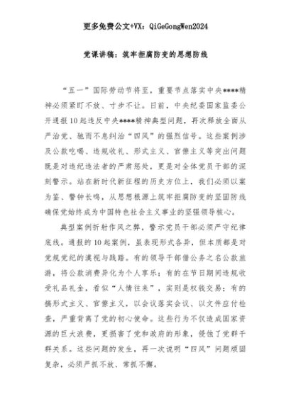 【七哥公文】2025年:党课讲稿:筑牢拒腐防变的思想防线+更多免费公文+VX:QiGeGongWen2024+更多免费公文+VX:QiGeGongWen2024