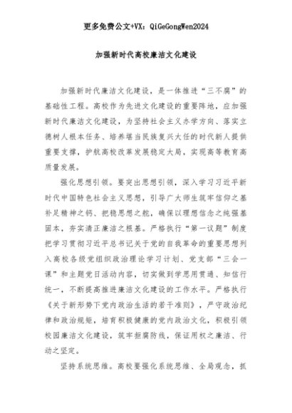 【七哥公文】2025年:加强新时代高校廉洁文化建设+更多免费公文+VX:QiGeGongWen2024+更多免费公文+VX:QiGeGongWen2024