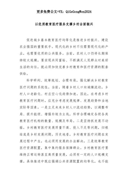 【七哥公文】2025年:以优质教育医疗服务支撑乡村全面振兴+更多免费公文+VX:QiGeGongWen2024+更多免费公文+VX:QiGeGongWen2024