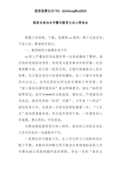 【七哥公文】2025年:副县长参加全市警示教育大会心得体会+更多免费公文+VX:QiGeGongWen2024+更多免费公文+VX:QiGeGongWen2024