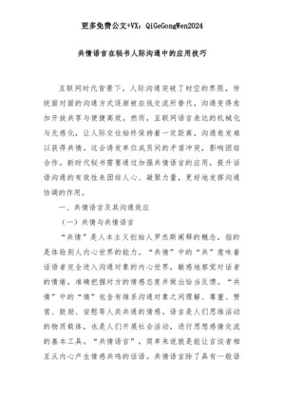 【七哥公文】2025年:共情语言在秘书人际沟通中的应用技巧+更多免费公文+VX:QiGeGongWen2024+更多免费公文+VX:QiGeGongWen2024