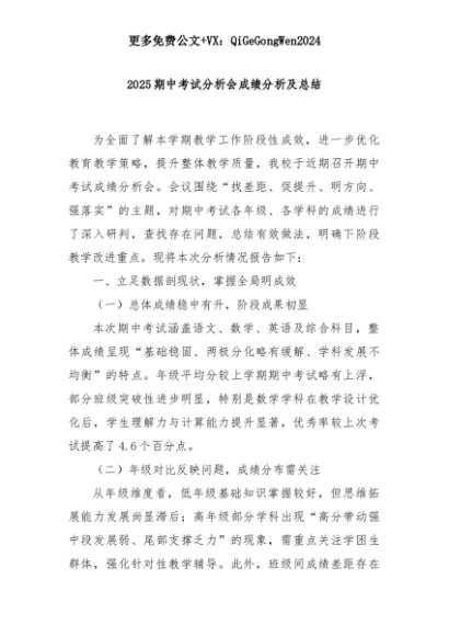 【七哥公文】2025年:2025期中考试分析会成绩分析及总结+更多免费公文+VX:QiGeGongWen2024+更多免费公文+VX:QiGeGongWen2024