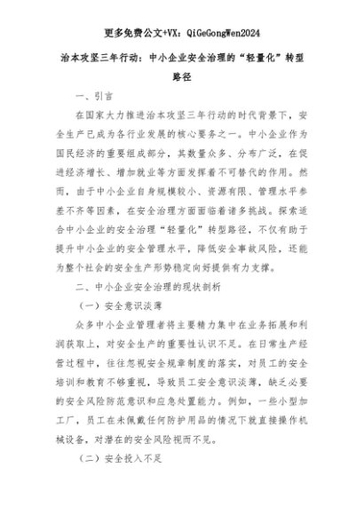 【七哥公文】2025年:治本攻坚三年行动:中小企业安全治理的“轻量化”转型路径+更多免费公文+VX:QiGeGongWen2024+更多免费公文+VX:QiGeGongWen2024